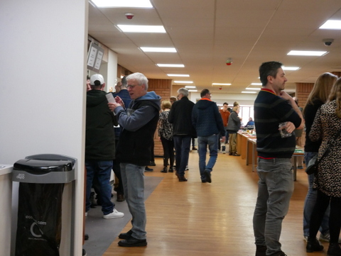 Windy walk up to the college via the back route and up the stairs. No problems with the tickets. A tick on a list, onto buying some beer tokens and picking up a program with the beer list.
